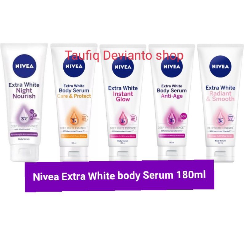 - Nivea extra white body serum care & protect 180 ml/Anti Age Body/instan glow/night nourishm serum 180ml