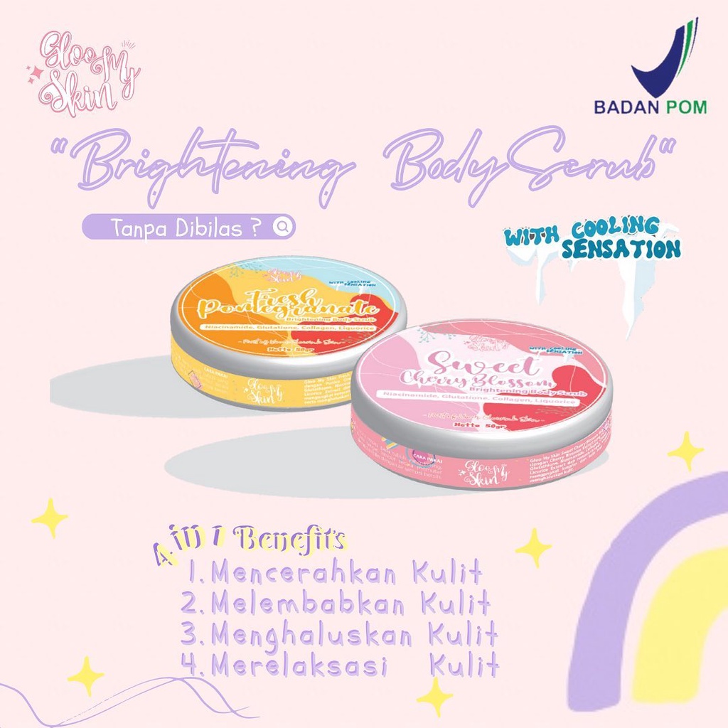 - [BPOM][DIST RESMI] GLOOMYSKIN BRIGHTENING BODY SCRUB WITH COOLING SENSATION/SCRUB DAKI/GLOOMY SKIN/SCRUB BPOM/POMEGRANTE/CHERRY BLOSSOM/NIACINAMIDE/GLUTATHIONE/COLLAGEN/LIQUORICE/CHAMOMILE/GREENTEA EXTRACT/MENTHOL