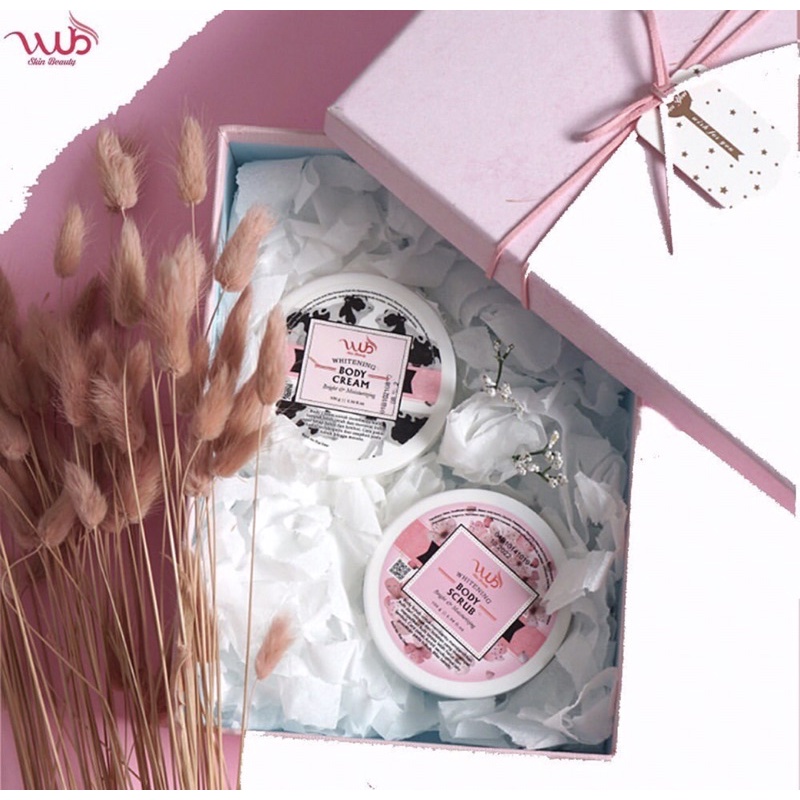 2. PAKET HEMAT cerah glowing Wub Whitening body cream Body scrub 100g (HALAL SUDAH BPOM)