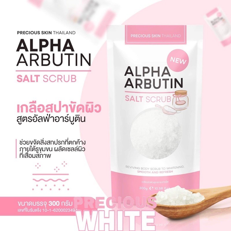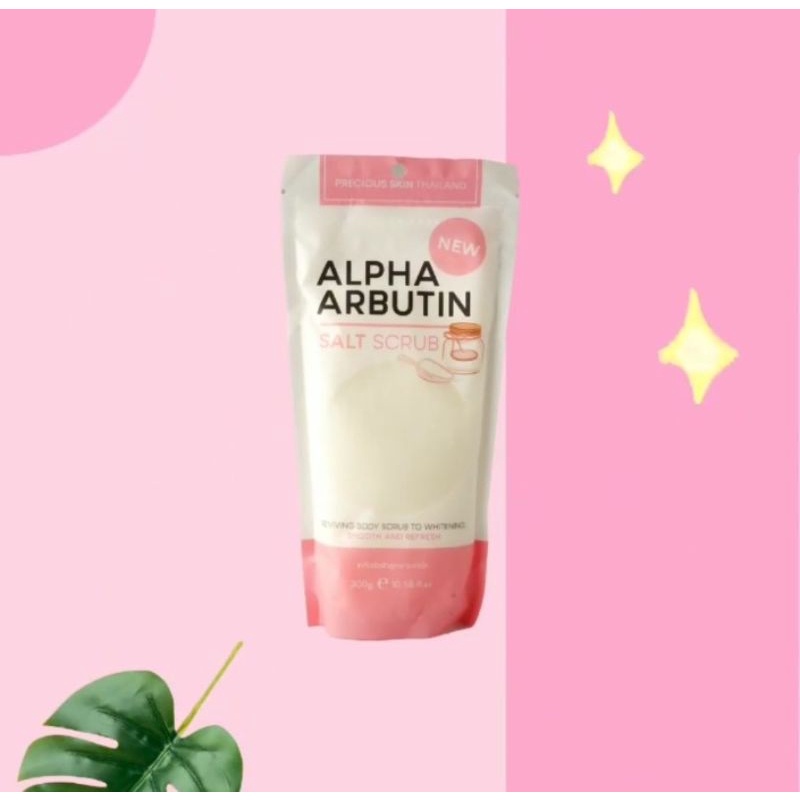 - Scrub Pemutih Kulit Glowing Lulur Badan Garam Mandi 300g Precious Skin Alpha Arbutin 3Plus Whitening Body Shower Salt