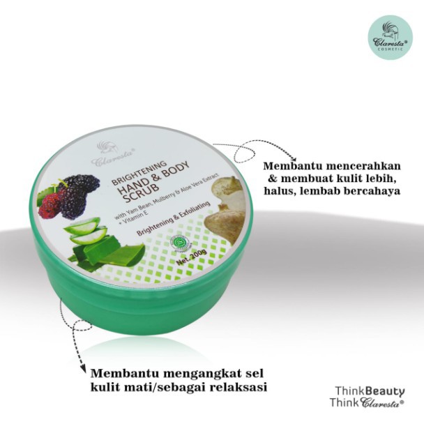 - Claresta Brightening Hand & Body Scrub with Yam Bean, Mulberry, & Aloe Vera Extract ++ 200 G