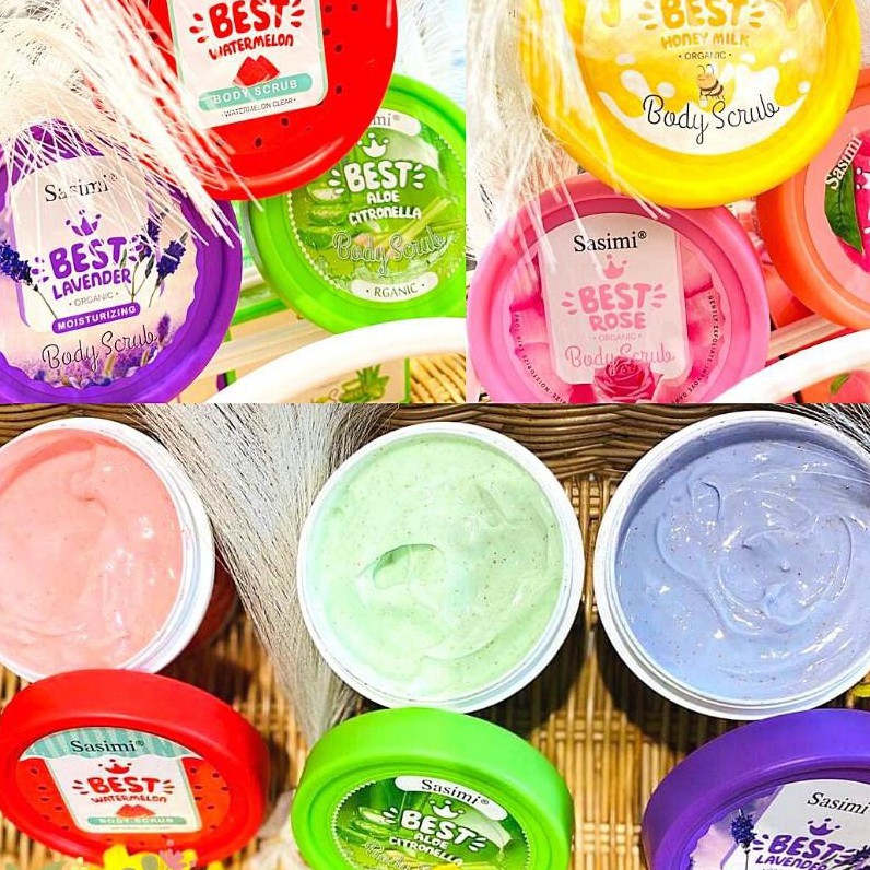 - ✅COD FREEONG SCRUB BODY SASIMI HONEY MILK PEACH LAVENDER ROSE WATERMELON ALOE VERA LULUR BADAN