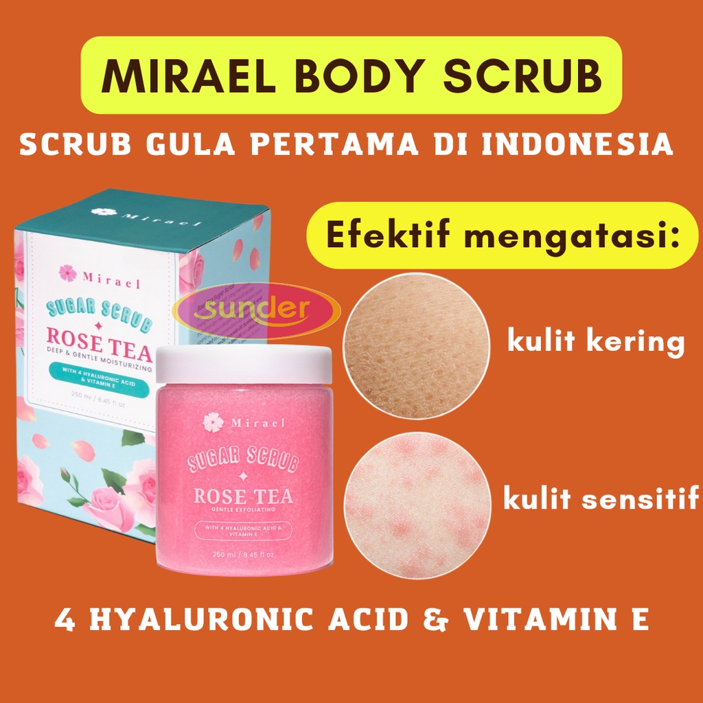 3. ORI Mirael Sugar Scrub Rose Tea Body Scrub Exfoliating Natural Untuk Kulit Kering Sensitif Scrub Gula Mireal 250 ML