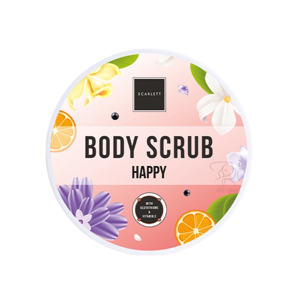 - SCARLETT BODY SCRUB HAPPY / SCRUB BADAN HAPPY DENGAN GLUTATHIONE DAN VITAMIN E