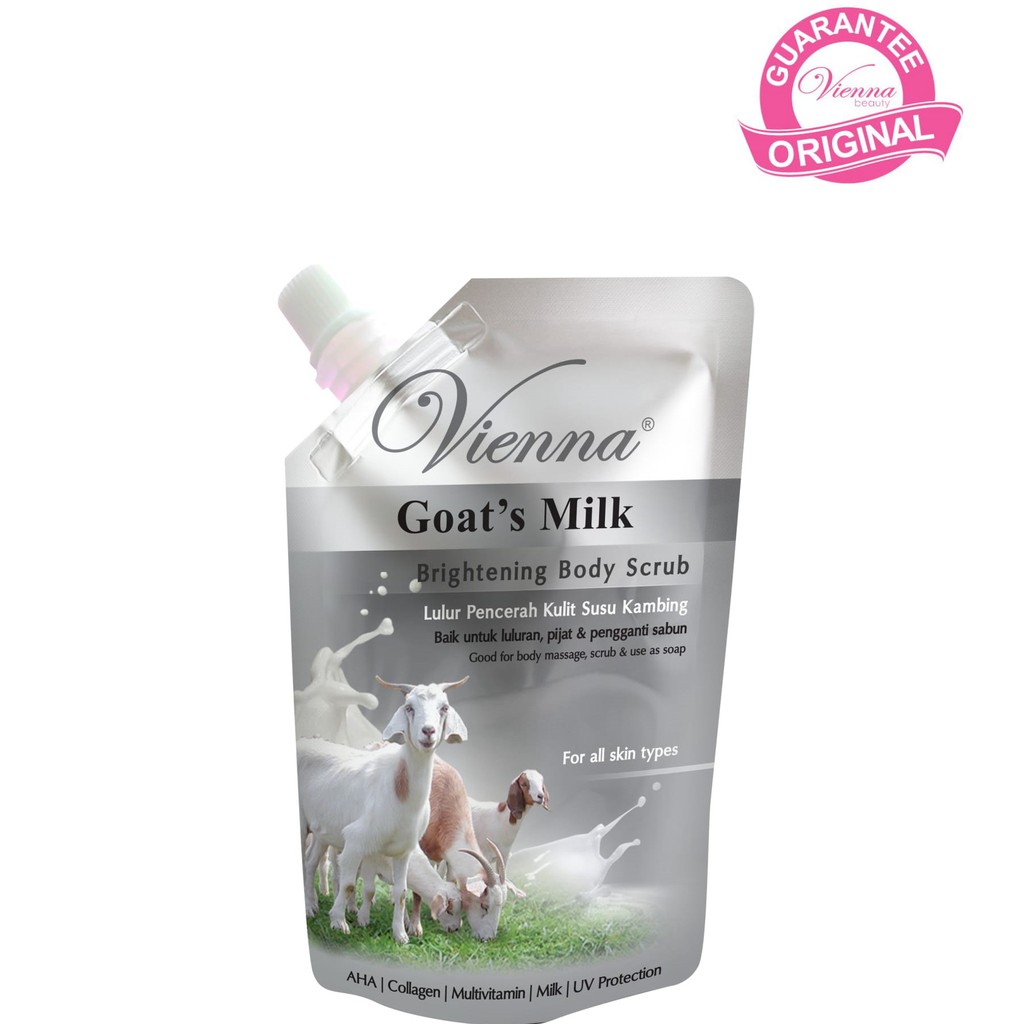 - Vienna Body Scrub Goat’s Milk 250gr Jar Ori BPOM Lulur Badan Pemutih Badan Pencerah Badan Luluran