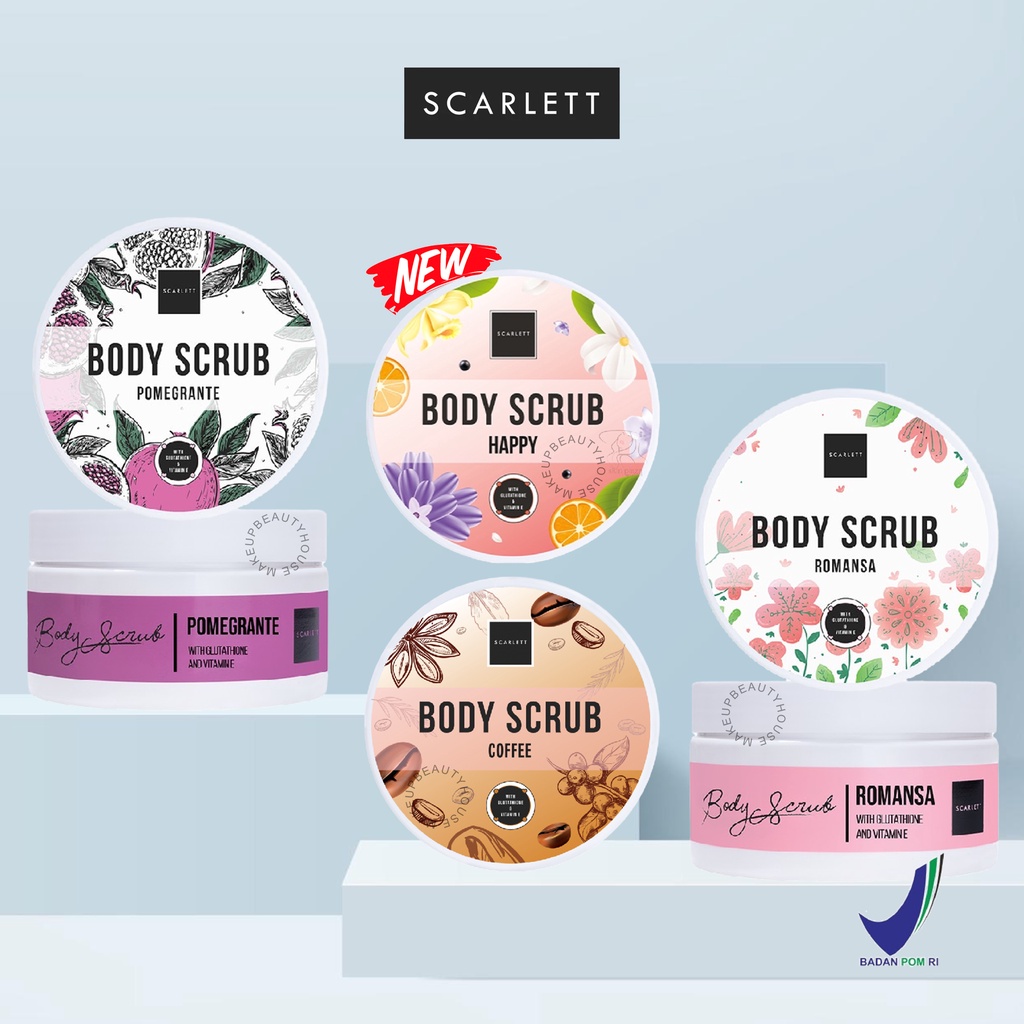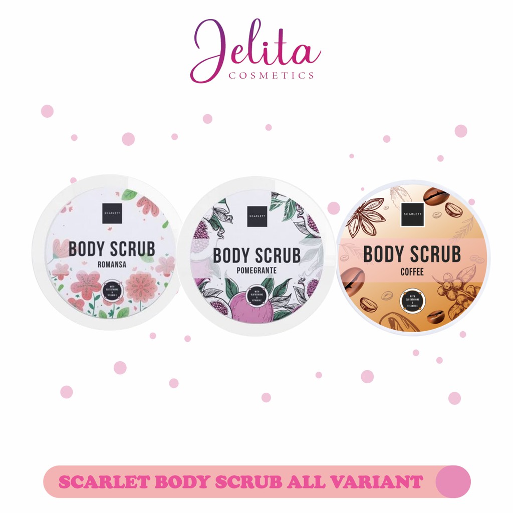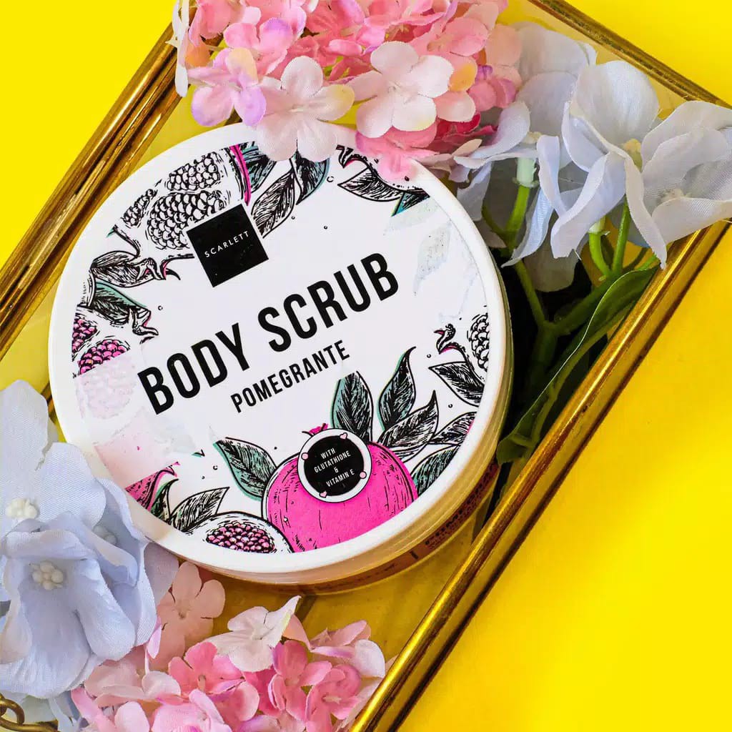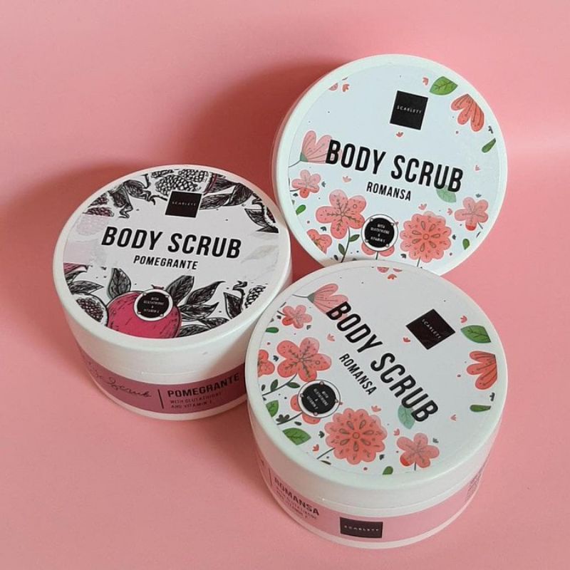 - SCARLETT WHITENING Body Scrub Series – Pomegranate | Coffee | Romansa | Happy
