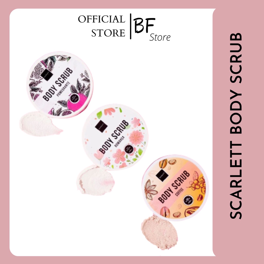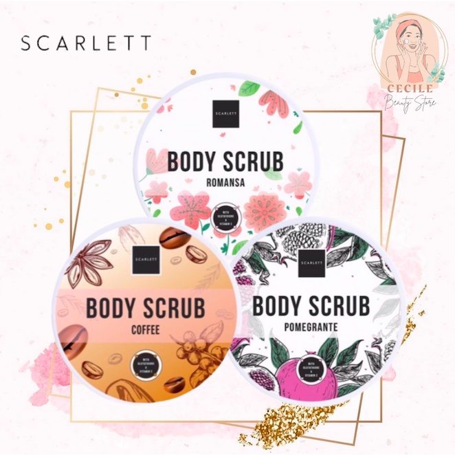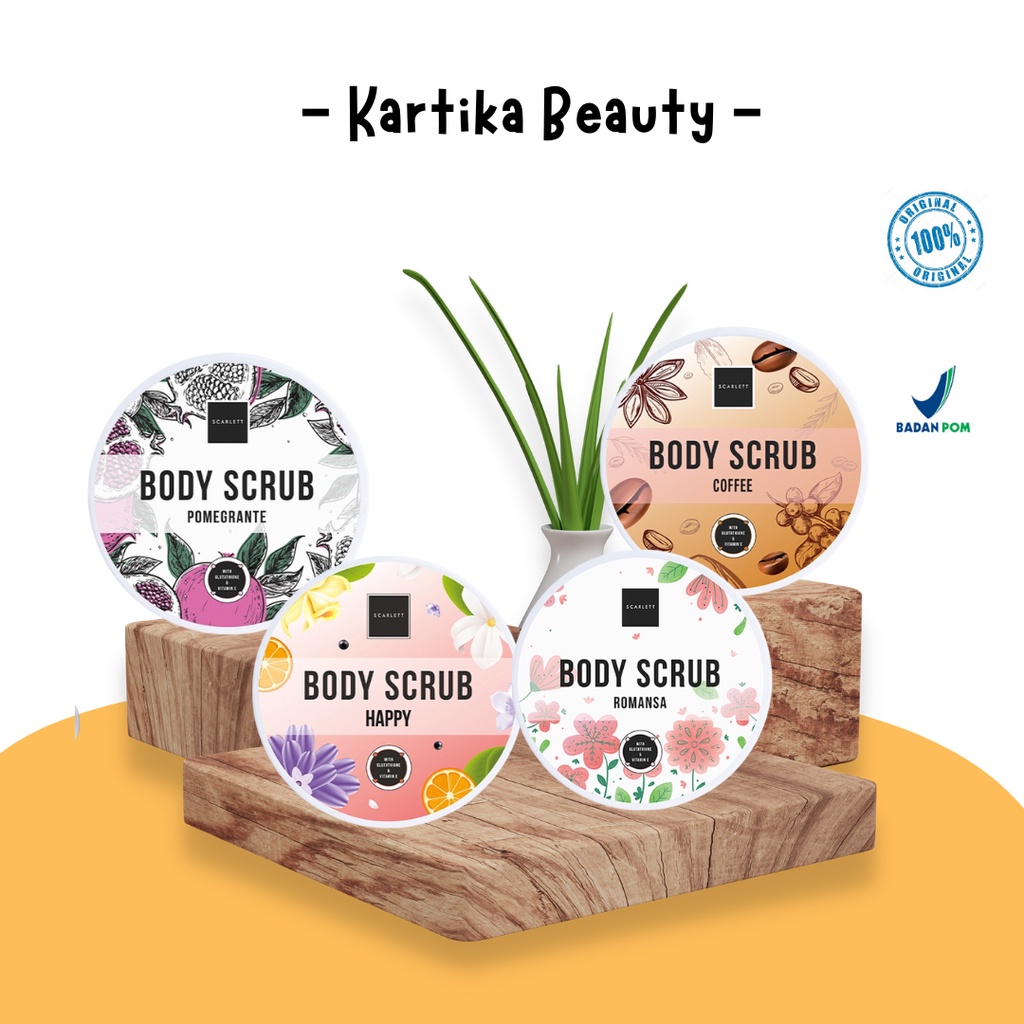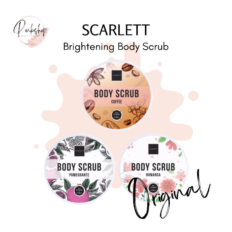 - SCARLETT WHITENING Body Scrub Series – Pomegranate | Coffee | Romansa | Happy